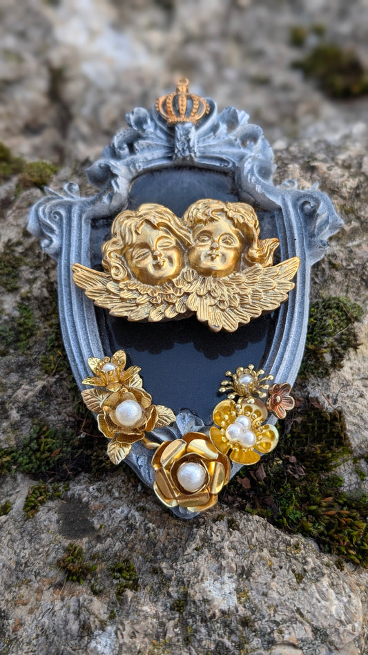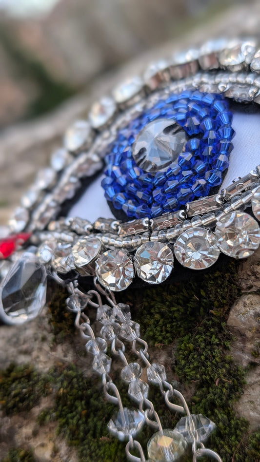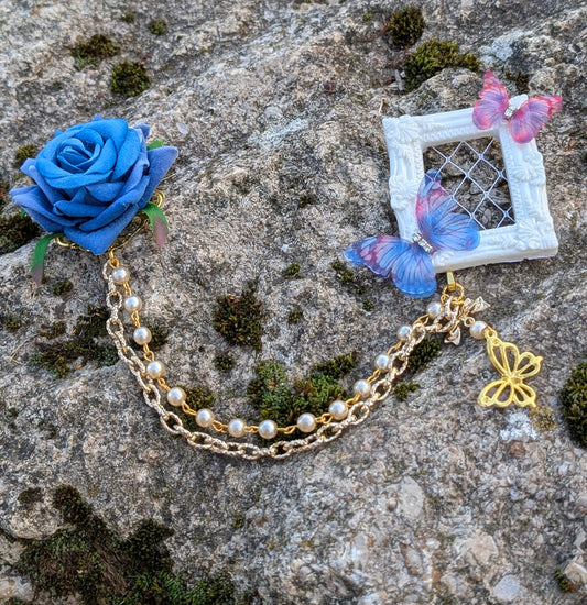 Ketten Brosche "Rosenfenster" • Blau • Schwarz