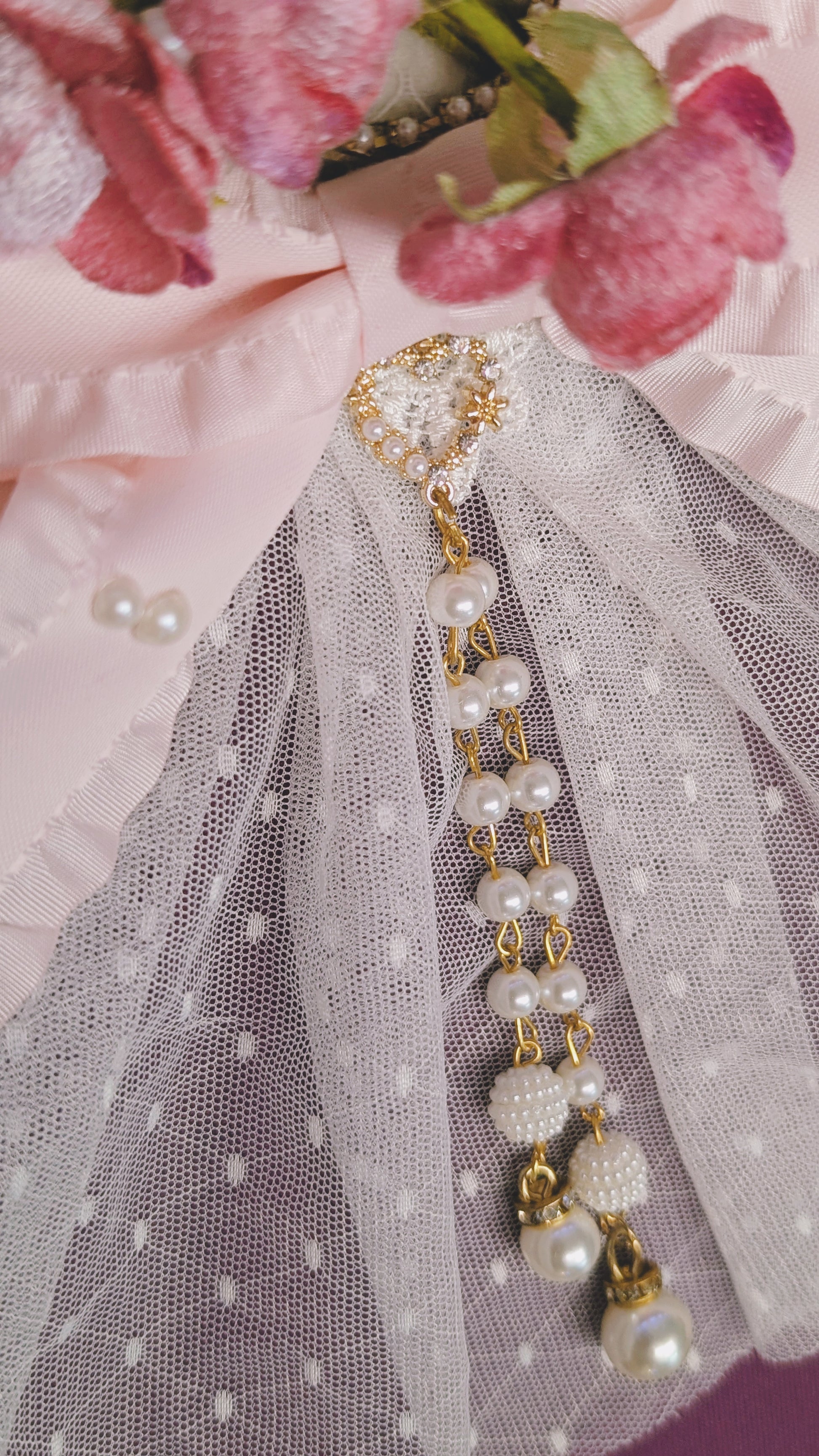 Blütenschleier Brosche/Spange • Weiß • Rosa • Rot