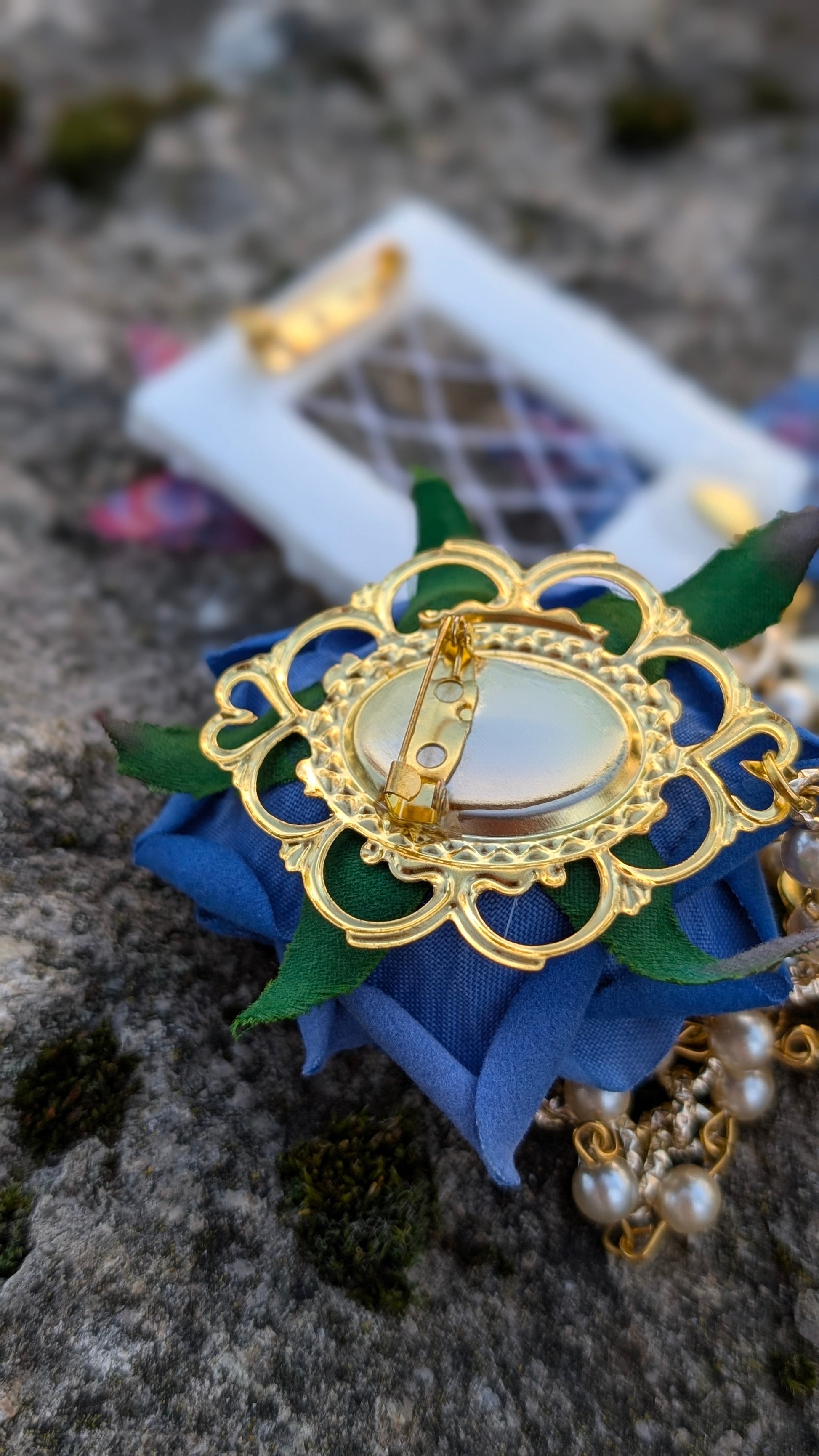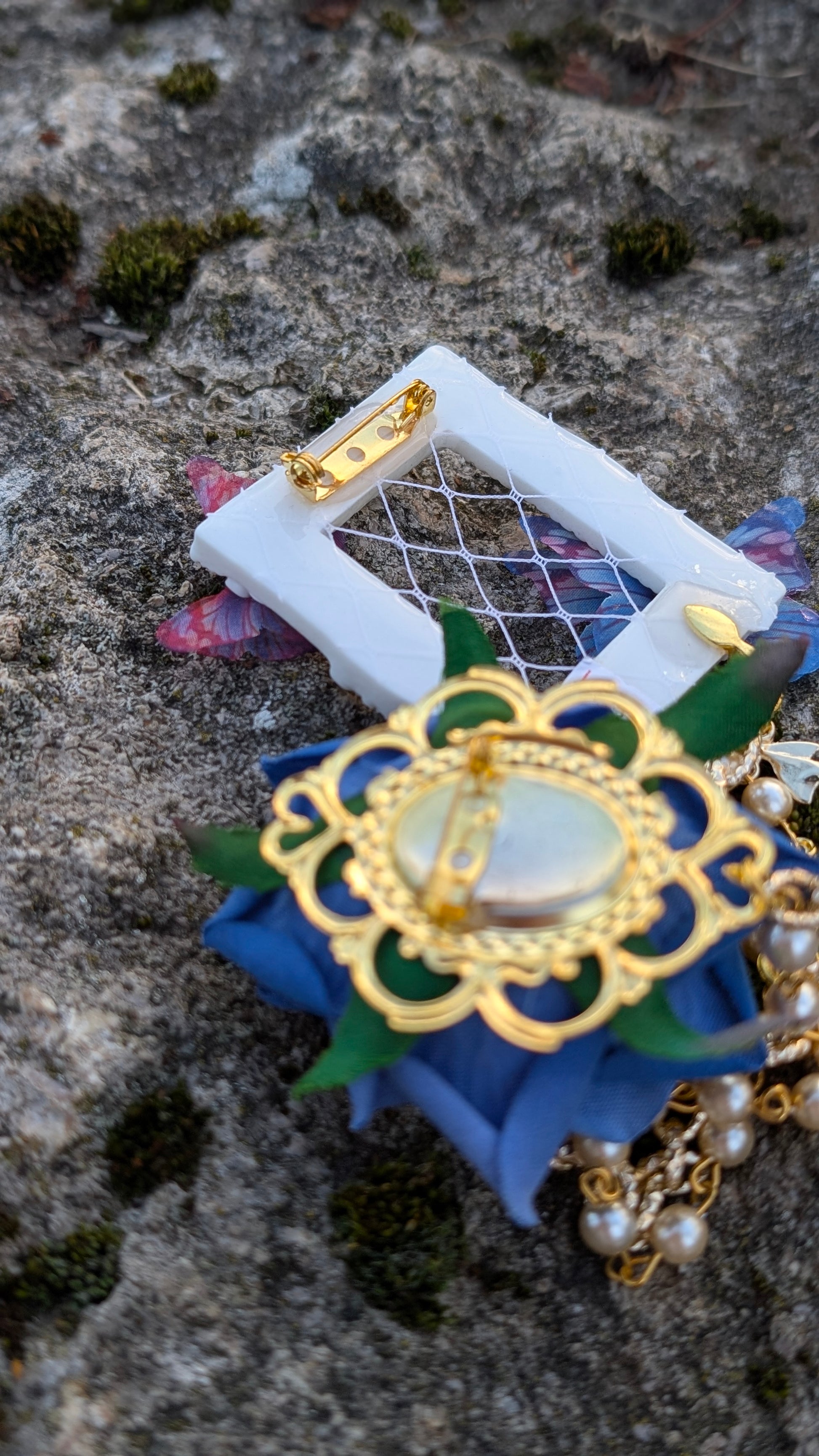 Ketten Brosche "Rosenfenster" • Blau • Schwarz